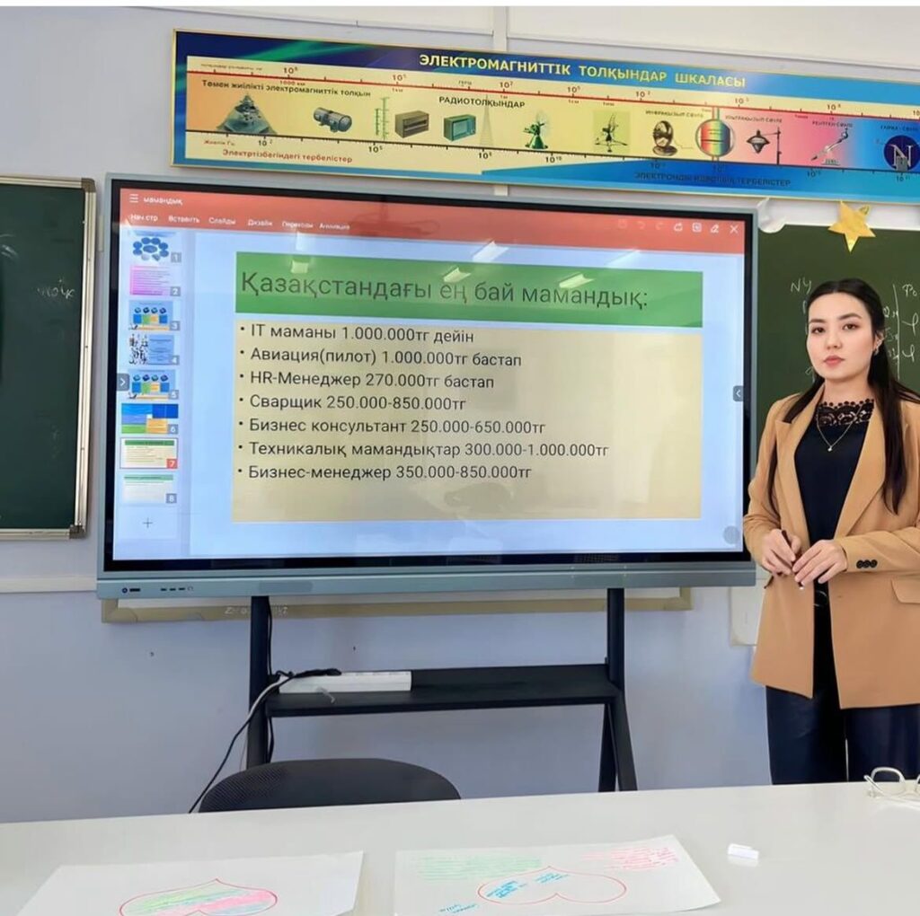 Мектебімізде қазан айының 15 жұлдызында 11-сыныптар қатысуымен оқушыларға кәсіби бағдар беру аясында «Профи TIME» мамандықтар әлемі тақырыбында дөңгелек үстел өткізілді.